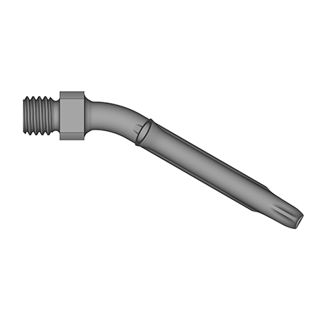 Alle Schnellschweißdüsen für runde oder handelsübliche dreieckige Drahtprofile aus dem Standardangebot können links- oder rechtsgebogen im Winkel von 30°, 45° gefertigt werden (Gewinde M10)