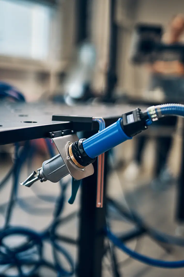 Gun Holder Gun Holder for MTIG Practical holder for attaching to a workbench can be screwed to the table for flexible use, you can use our quick-release clamp or another common table clamp Quick-release clamp for Gun Holder For flexible use of the Gun Holder Complete set - Gun Holder for MTIG The set includes Gun Holder and a quick-release clamp for flexible use of the holder