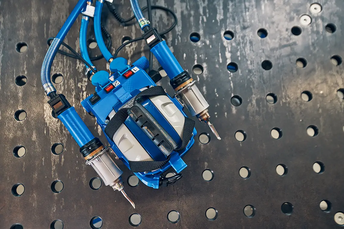 - Integrovaný držák pro odložení svařovací pistole MTIG