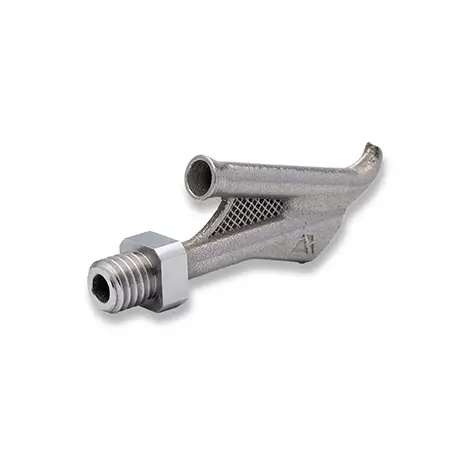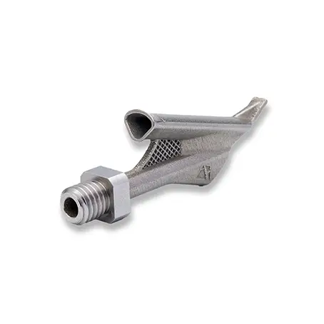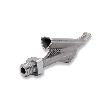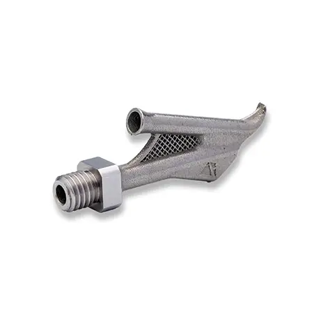 Všechny trysky jsou vyráběny inovativní metodou SLM (3D tisk kovů) z austenitické korozivzdorné oceli AISI 304L. Materiál byl dlouhodobě mechanicky zkoušen při vysokém teplotním zatížení Technickou Univerzitou v Liberci.